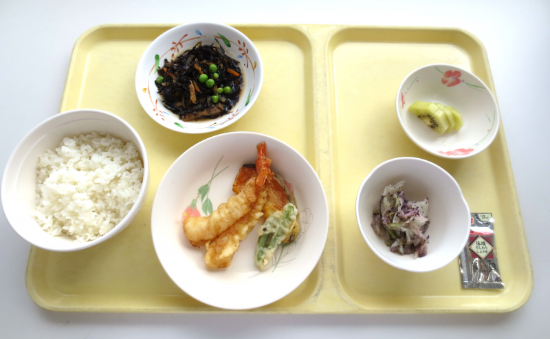 当院は透析治療を受けられている患者さまが多いため、食事内容にも工夫を凝らしています。たんぱく質やカリウム、リンなどの制限を考慮しつつ、揚げ物を多めに取り入れ、満足感のあるお食事を心がけています。天ぷらやフライなども院内で調理しており、塩分は控えめですが、素材の旨みを活かした味付けでおいしいと感じていただけるよう、日々工夫しています。